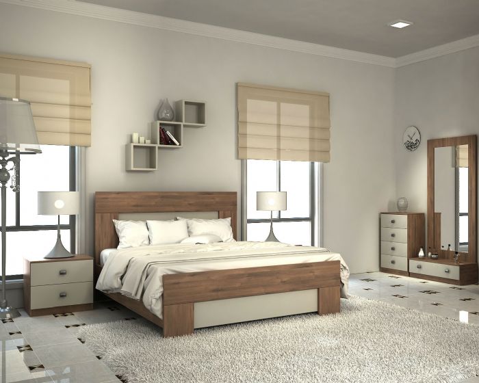 חדר שינה קנטרי בגוון שמנת ממלאי